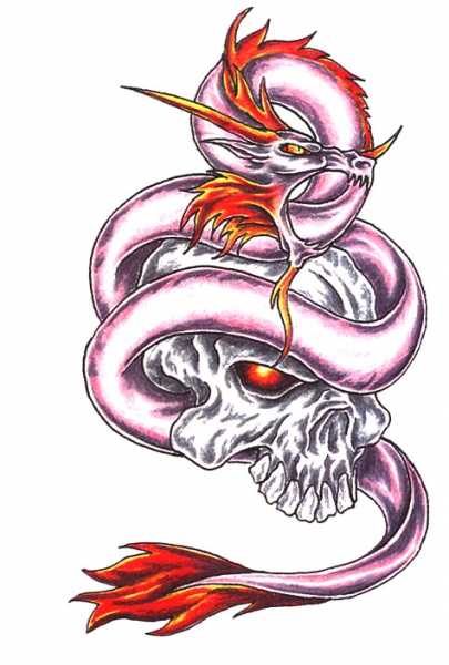 Dit is de tattoo afbeelding "Draak met Doodshoofd" uit de categorie Draken.